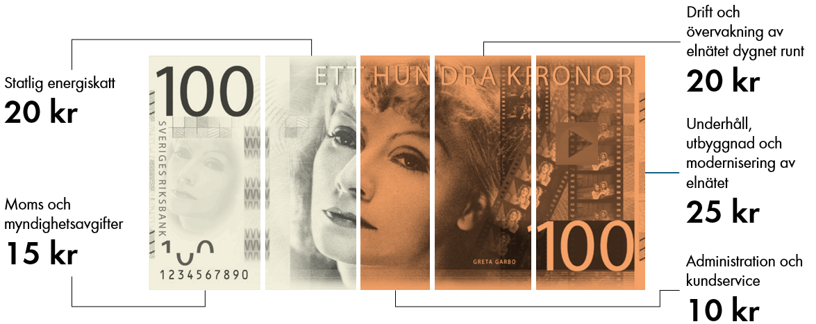 När el transporteras från platsen där den produceras hem till dig där den används går den via tre typer av elnät – stamnät, regionnät och slutligen via lokalnät. Kostnaderna för den transporten kan skilja sig mycket åt, beroende på var man bor och hur elnätet är utformat. Samtliga Ellevios kunder har dock samma prislista, oavsett var man bor.