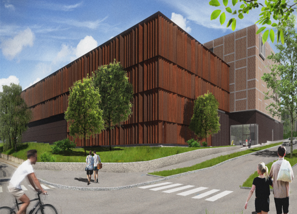 Vi har arbetat med fasadernas utformning och hela byggnadens volymgestaltning för att skapa en byggnad som upplevs som vänlig och intresseväckande och som relaterar till människans skala. Utmaningen är att bryta ner de stora volymernas skala utan att kunna jobba med ”vanliga” arkitektoniska element som fönster och balkonger vilka markerar våningsindelningen i till exempel ett bostadshus.